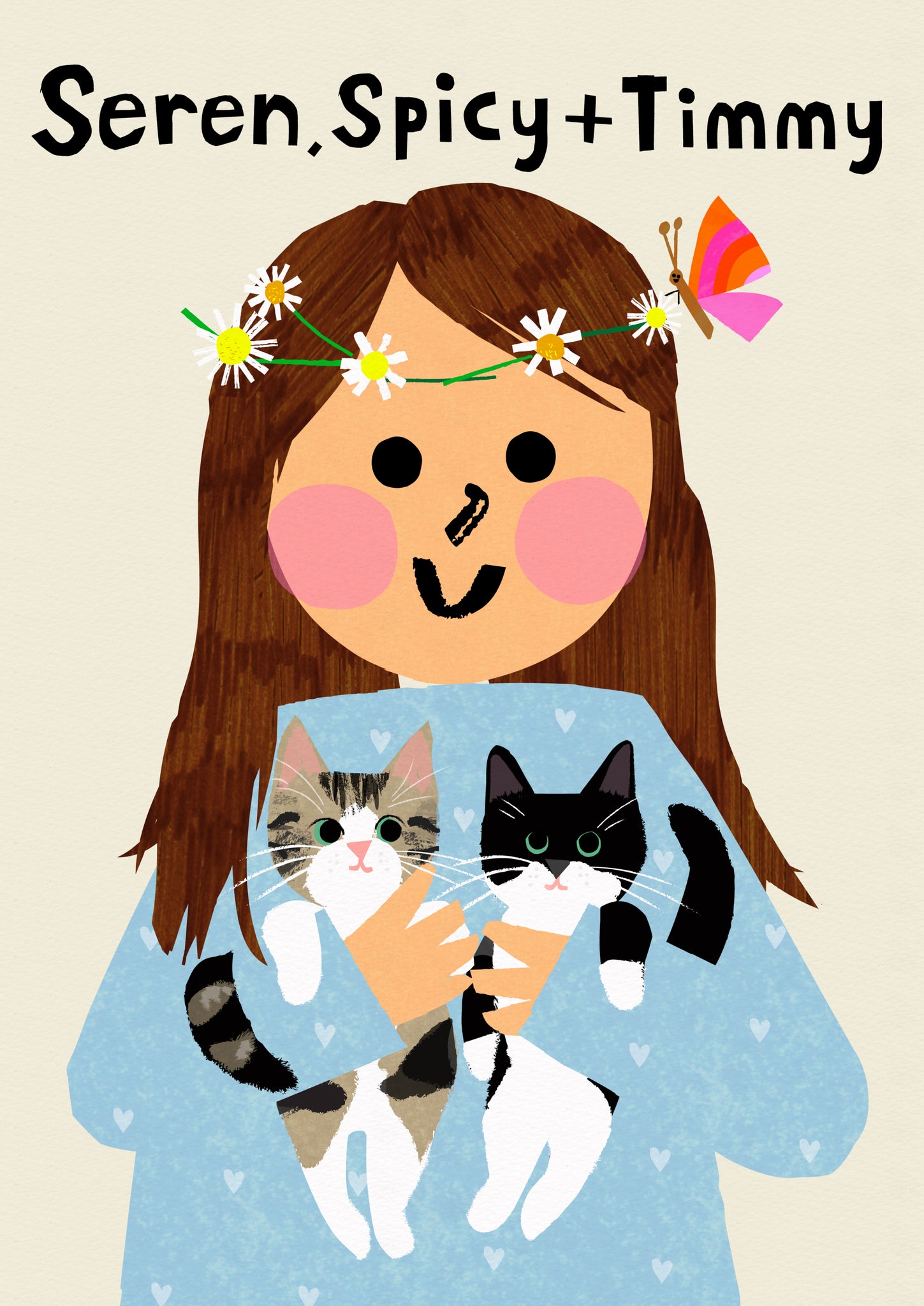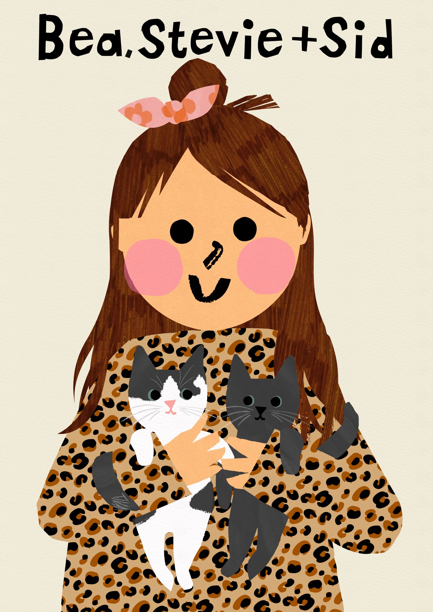 Please email me x1 photo of each cat & childs clothing/ hair accessory choice after placing order to match to Hello@kayvincentillustration.com